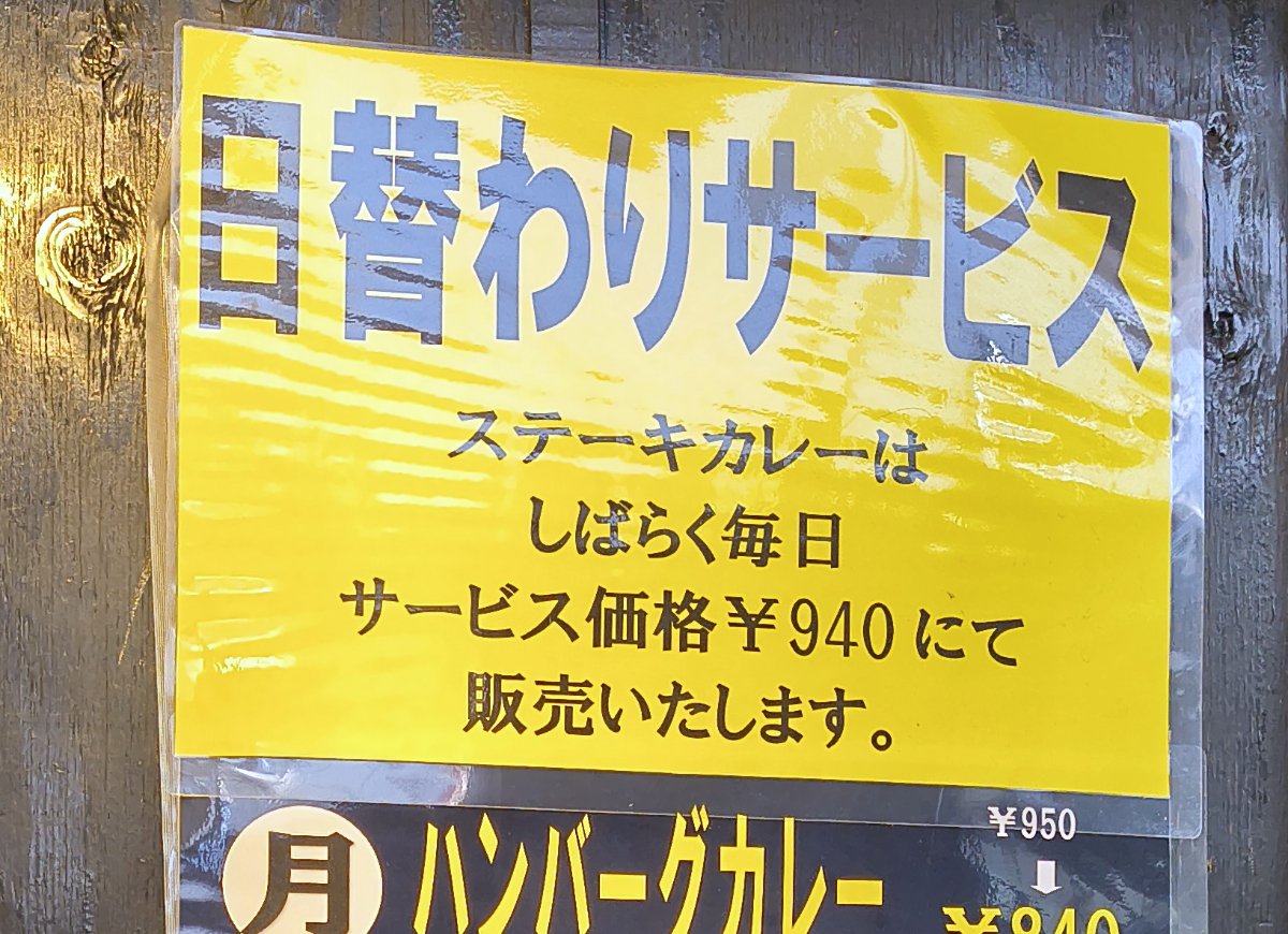 さらに驚くことにステーキカレーはしばらく毎日サービス価格の940円だって!