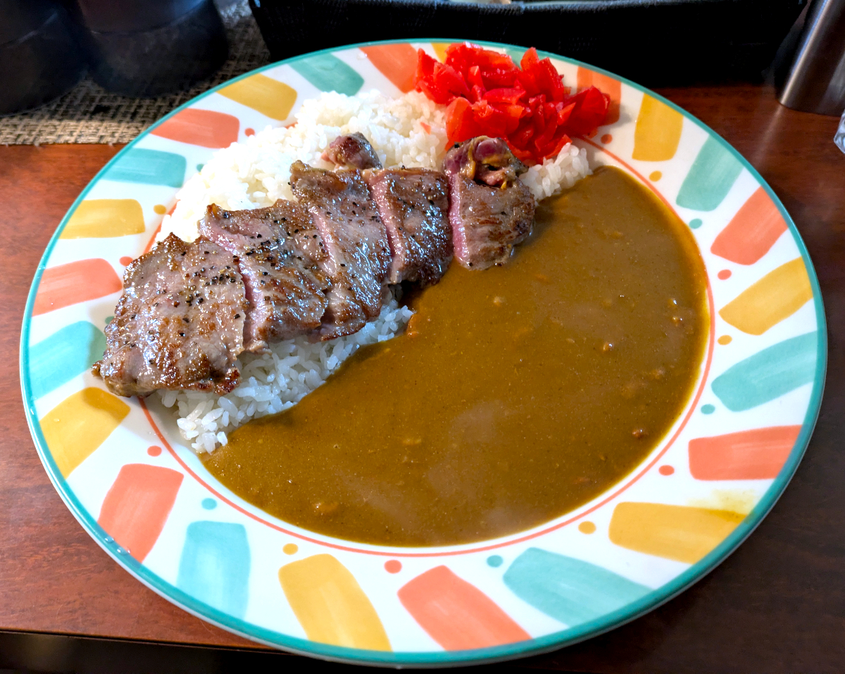 ▼ステーキカレーはしばらくの間、サービス価格の940円。安いだけでなくちゃんと美味い