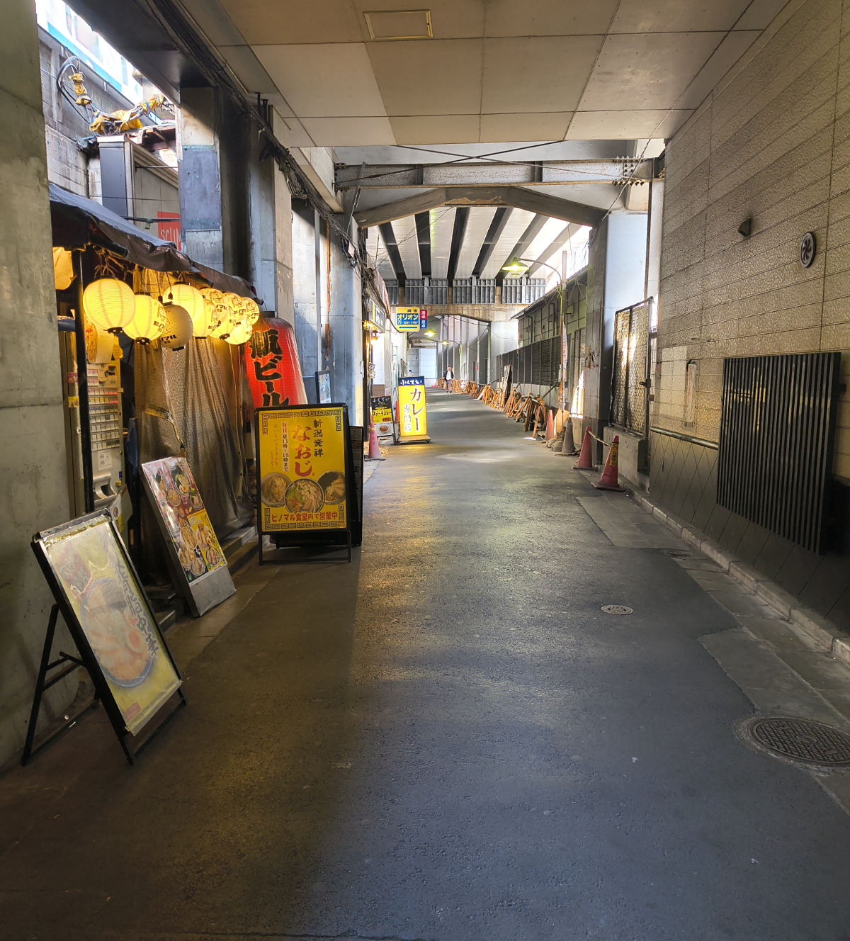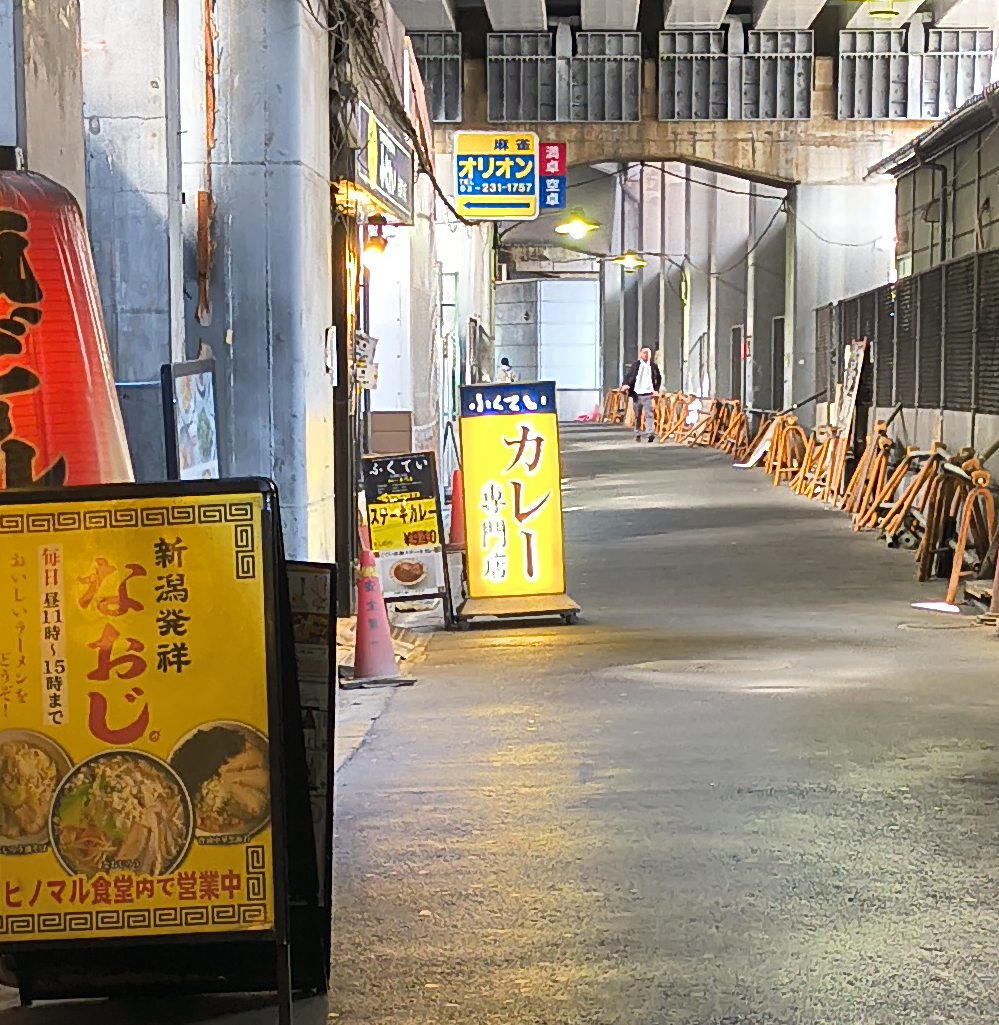 有楽町高架下センター商店街。銀座の街は常に少しずつ変化し続けているけど、この辺はあまり変わんないなあ。最近は耐震工事等の影響で高架下の景色が一変なんてこともある。JR高円寺の高架下は昔の風情はなくなったものなあ……。店はこの奥にあったはずなんだが。