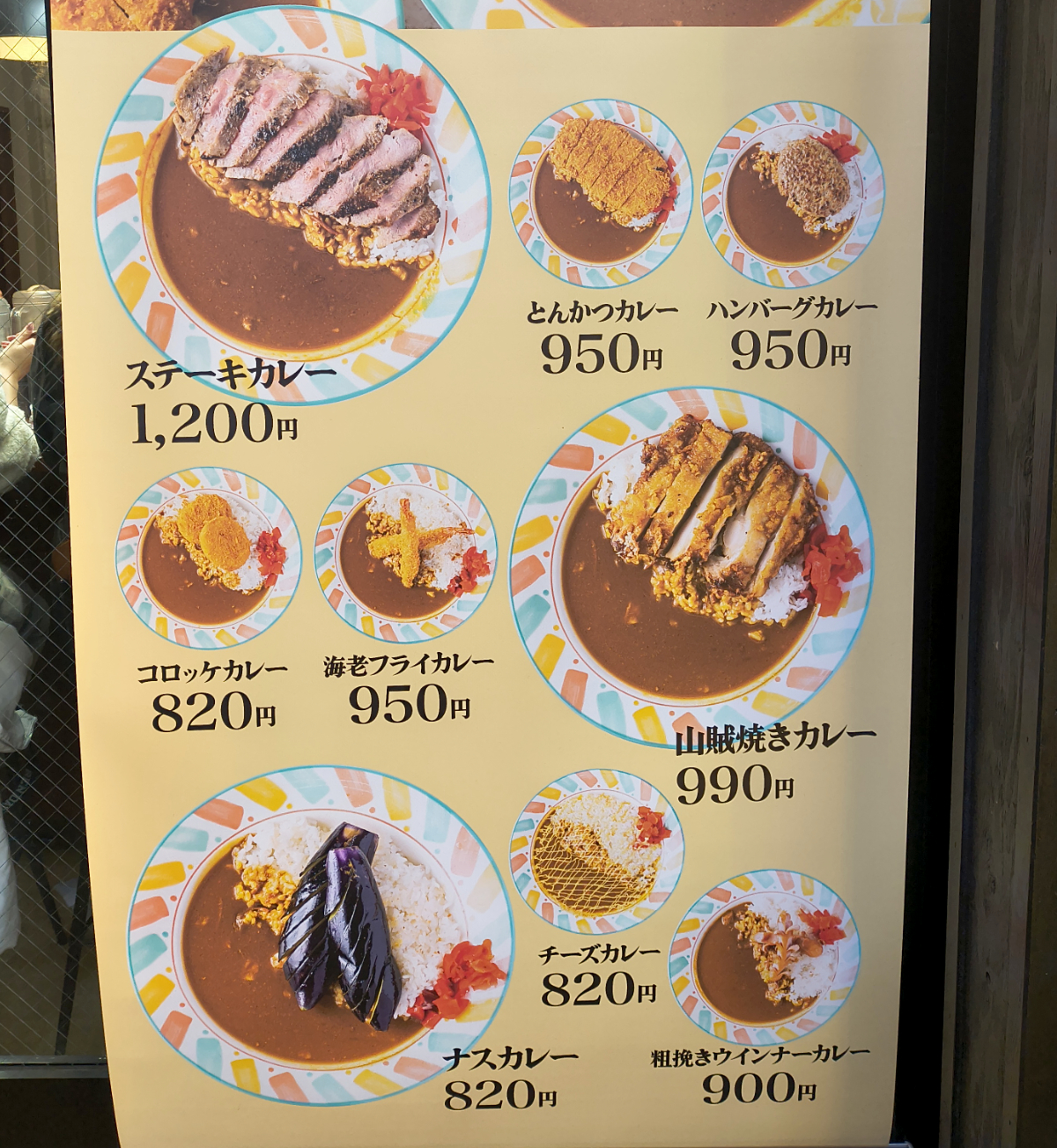 レギュラーメニューを見てみると、ステーキカレー1200円・とんかつカレー950円・ハンバーグカレー950円など。今のご時世、ランチでも1000円越えが当たり前だから、このくらいの価格は妥当だろう。