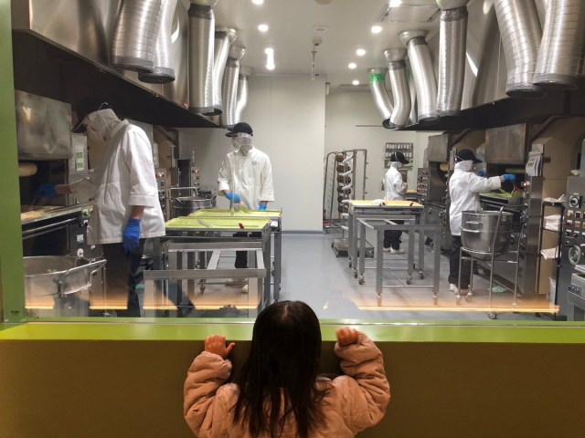 ガラス越しに製造工程をしっかり見ることができ、無料試食の方法も面白い。