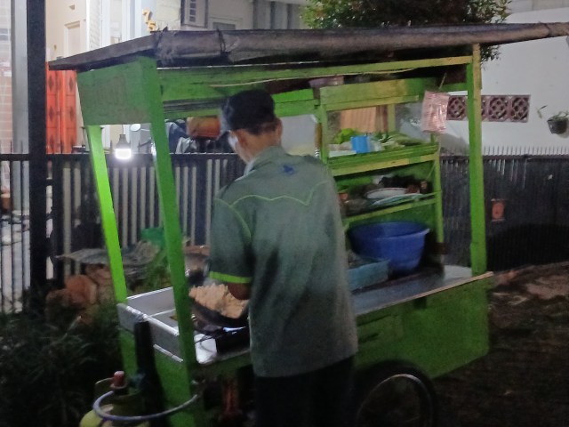 その音の正体は歩く屋台。店主さんの2本足に屋台の2つのタイヤと1本の支えがあることから、こういった歩く屋台を「Kaki Lima(5本足)」と呼んでいる。
