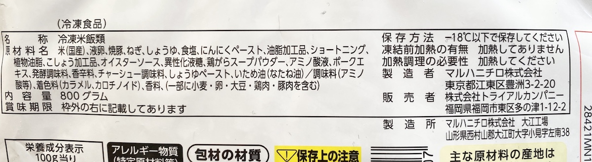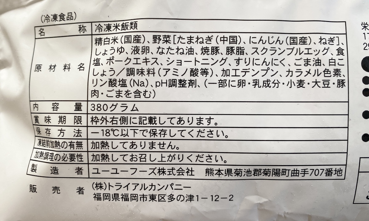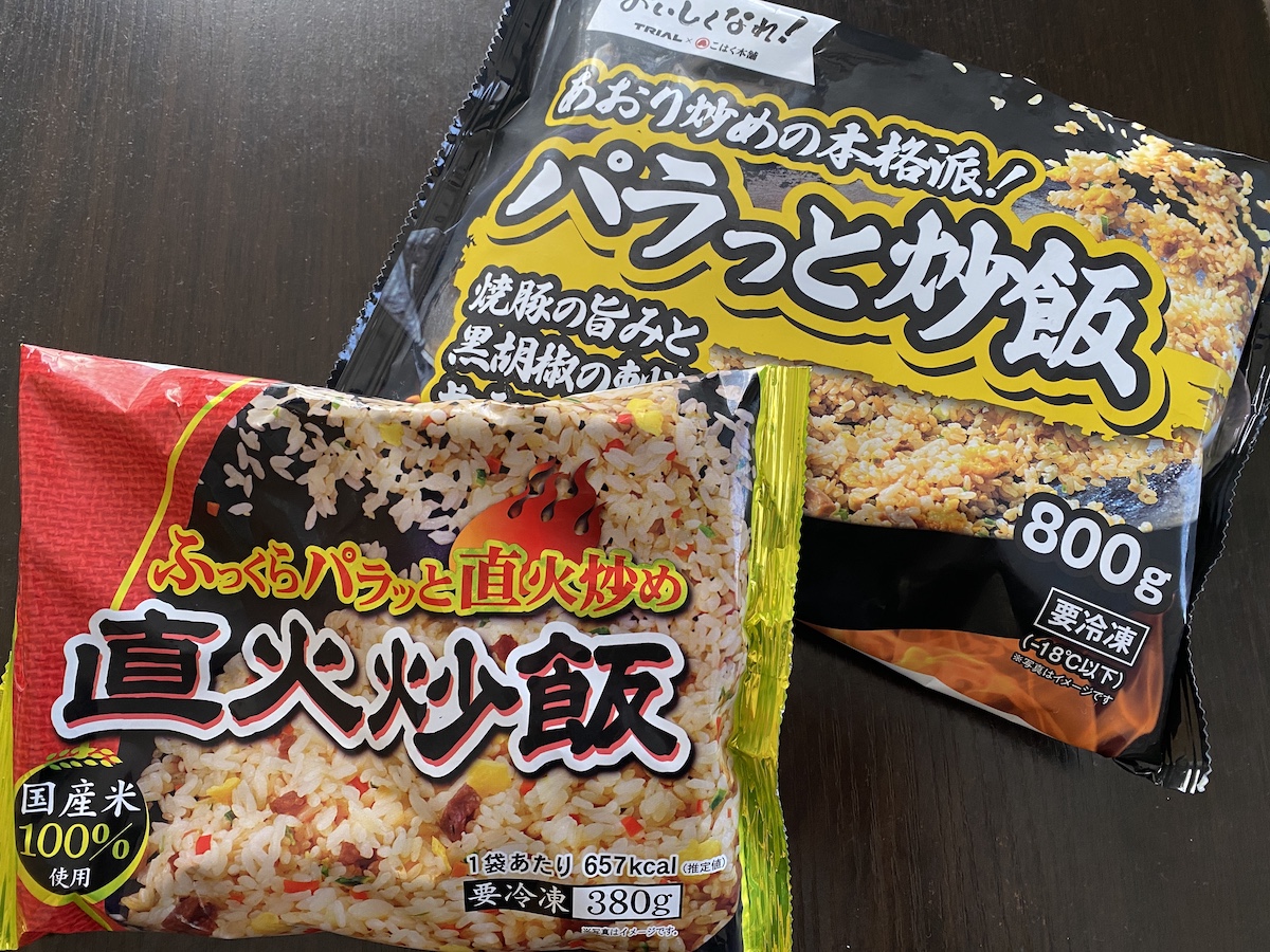 ちなみにPBらしき炒飯は2種類で「パラっと炒飯」、それから「直火炒飯」。後者に「おいしくなれ!」の表記はなかったものの、販売者がトライアルカンパニーだったから買ってみた。