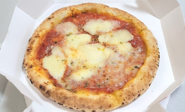今回、筆者はオーソドックスなマルゲリータ味を持ち帰ることにした。注文後、店員の方が冷凍のピザをオーブンで焼き始める。同時に番号の載った札を渡され、そこから2分ほど待てば商品を受け取れる。