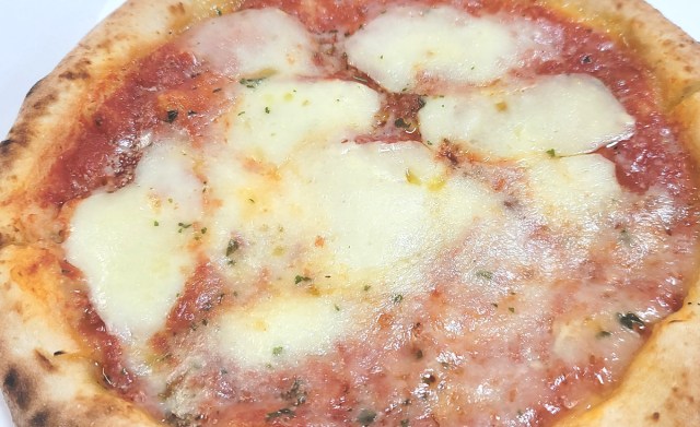 大手ピザチェーンで言えばハンドトスに相当するであろう厚みの生地も、もっちりとした弾力があって柔らかい。加えてサイズも直径約19cmに及び、十分な食べ応えを有している。