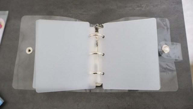 ▼シール帳は、下敷きのような素材のシートが6枚入っていた