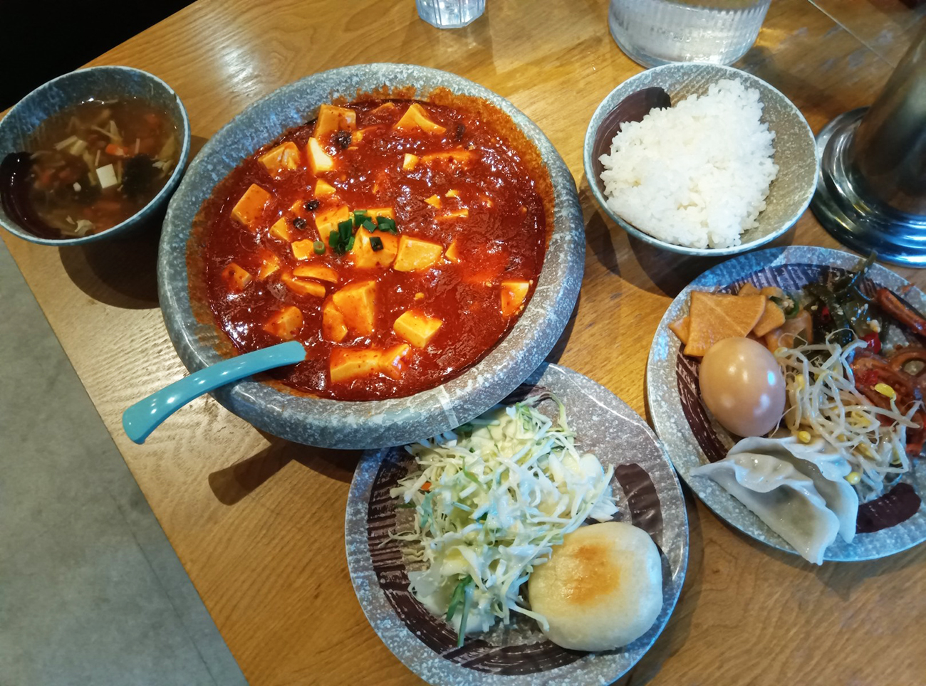 ▼でも実はパンもウマイ。麻婆豆腐の辛みと合う甘みだ