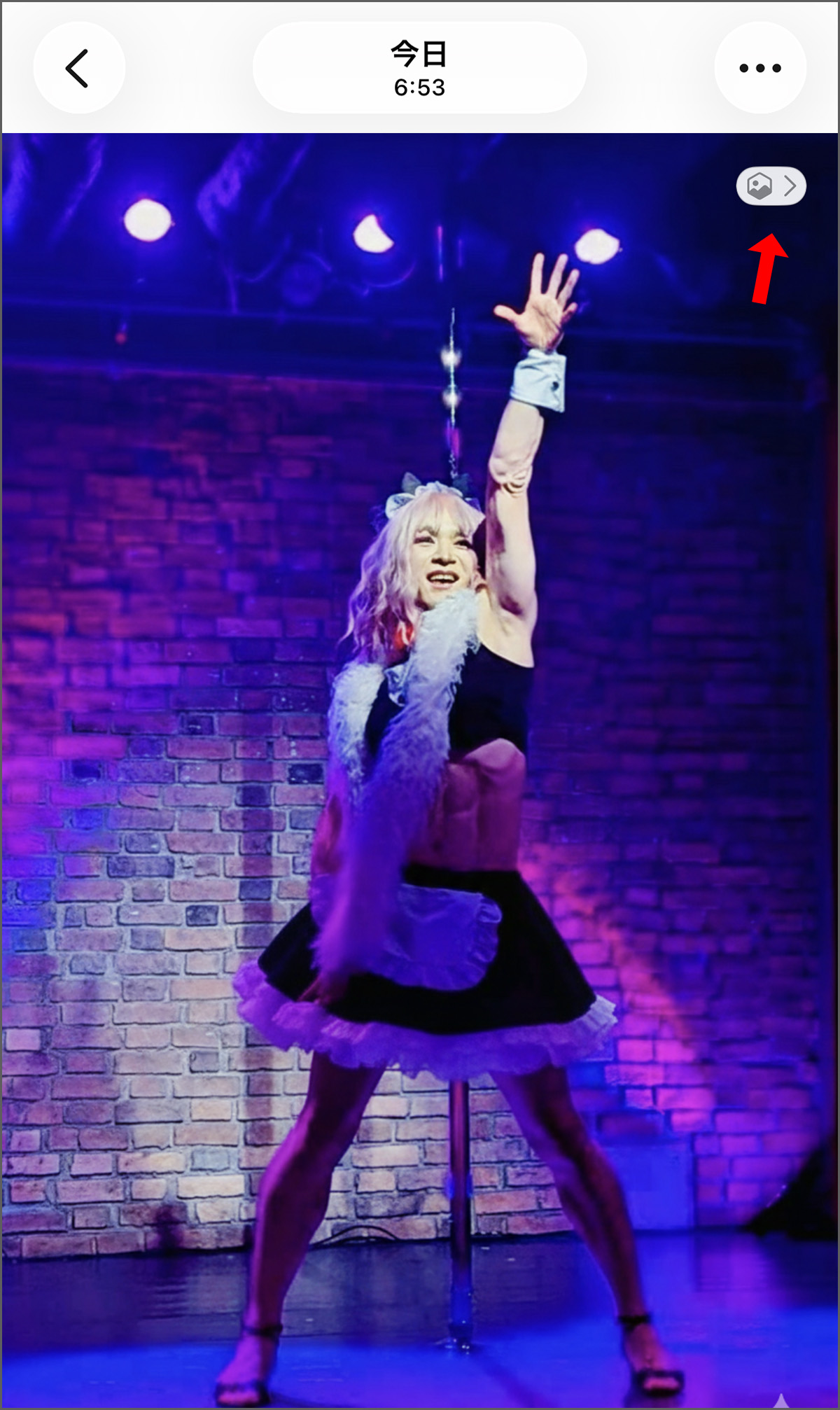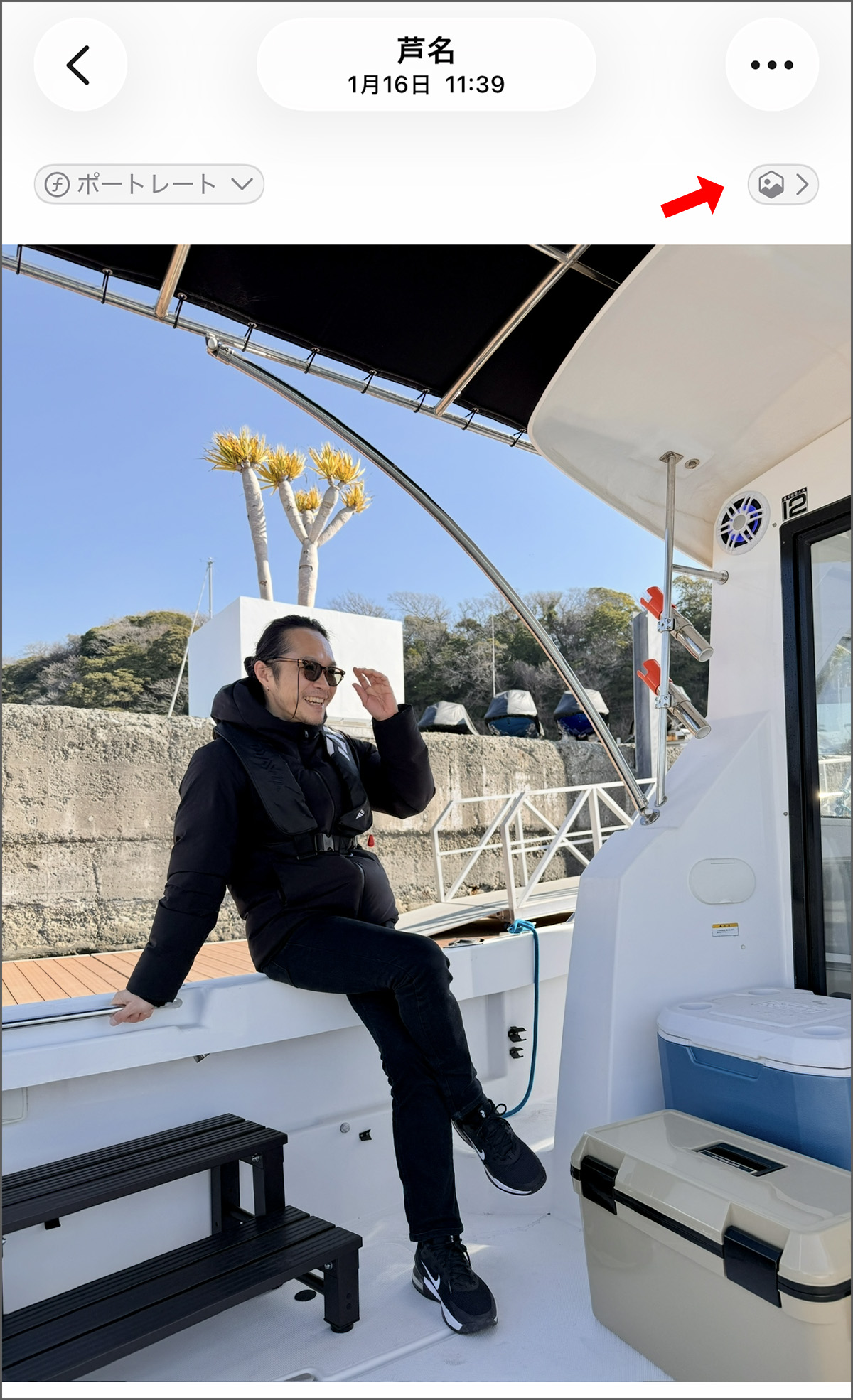 iPhone(iOS26)の「写真」をチェックしてたら、画像の上に謎のマークがあることに。なんだコレ?と押してみたら……なんと写真が立体的になってしまった! なにこれスゴイ〜〜〜!!