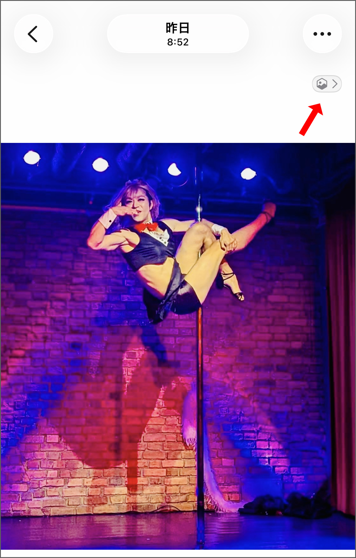 具体的なやりかたはこう。写真の上にあるこのマークを押すと、