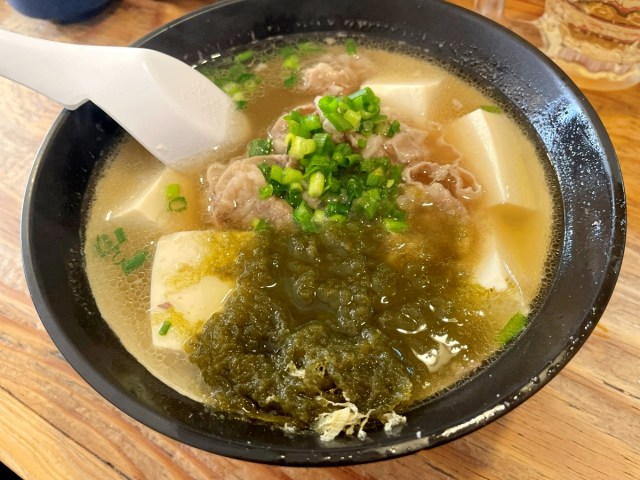 ▼この “無限” を止めるため、シメの『肉吸い』(税込572円)を頼んで自ら強制ストップとした。危ないところだった。