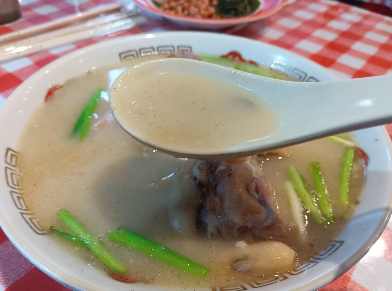 ▼豚足スープはまろやかな味の中に胡椒が効いてる