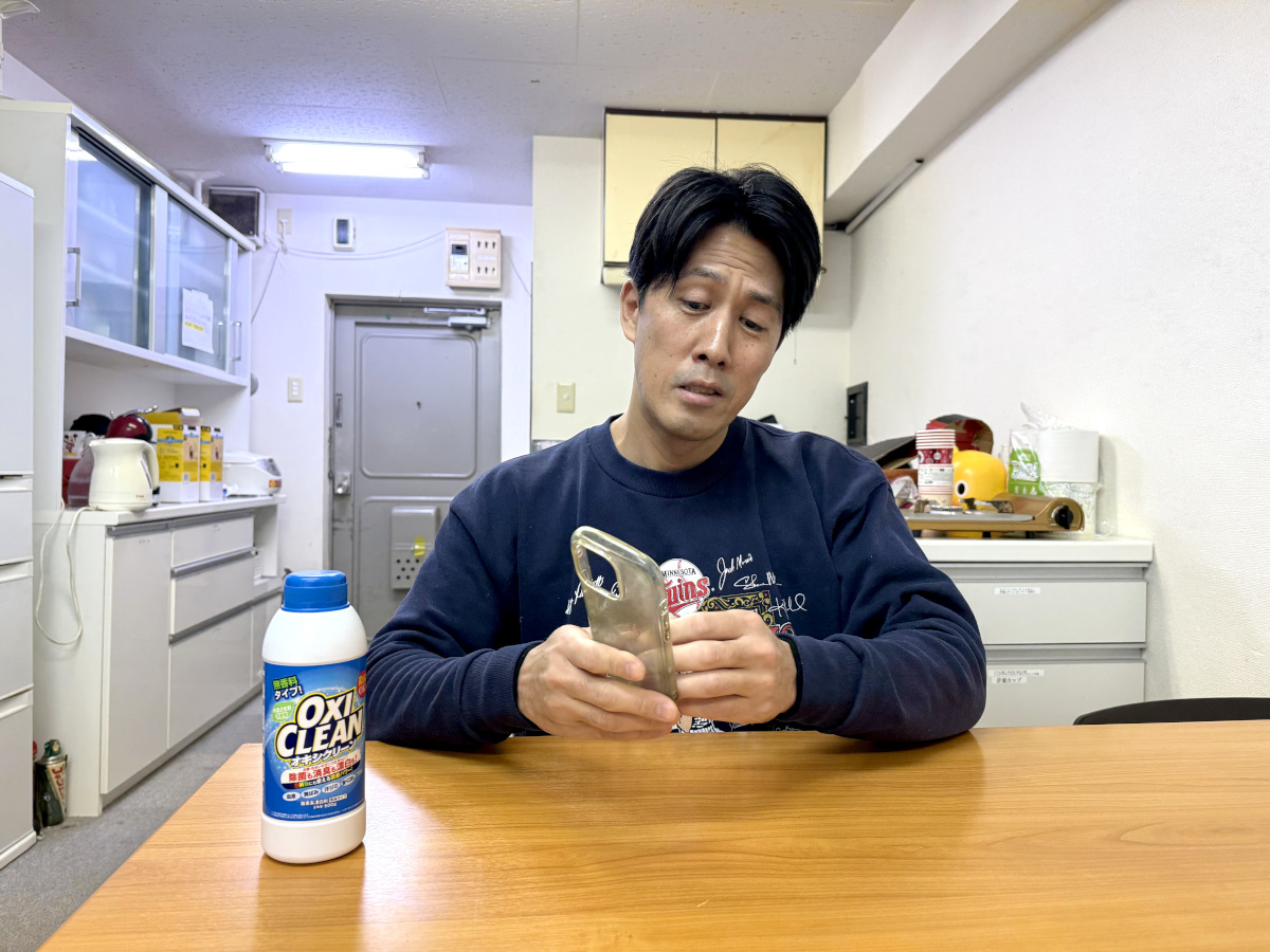 「TPUの場合、漬けすぎは良くないっぽいです」という砂子間記者のアドバイスを受け、ジャスト1時間スマホケースをオキシ漬けしてみることにした。そして1時間後……