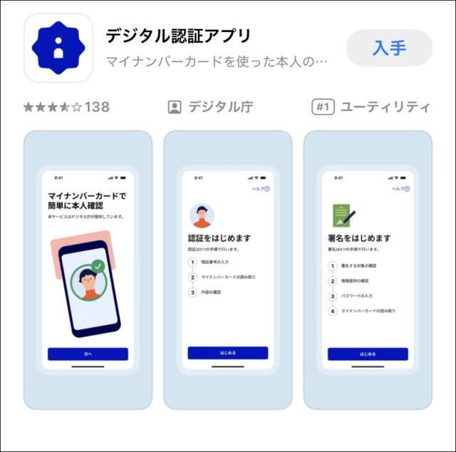 この「デジタル認証アプリ」は、デジタル庁が提供しているマイナンバーカード読み取り用のアプリ。「マイナポータル」を使うことができればラクだったのだが、こればかりは仕方がない。