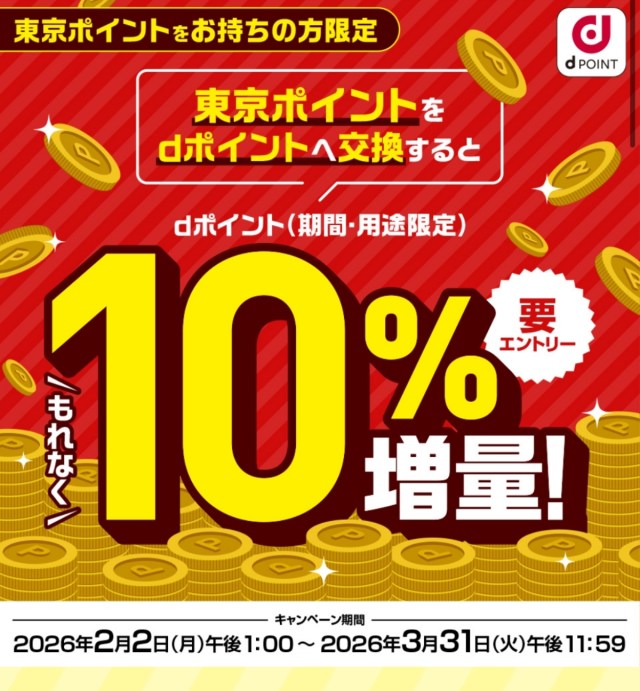 ▼「楽天ペイ」に交換した後、「dポイント」が10%増量キャンペーンを実施しているのを知って少し後悔してしまった。エントリーすると1万2100ポイントもらえたようだ。