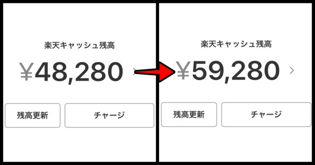 ものの数秒で「楽天キャッシュ」の残額に反映された。よしよし、1万1000円分を見事ゲットだ。