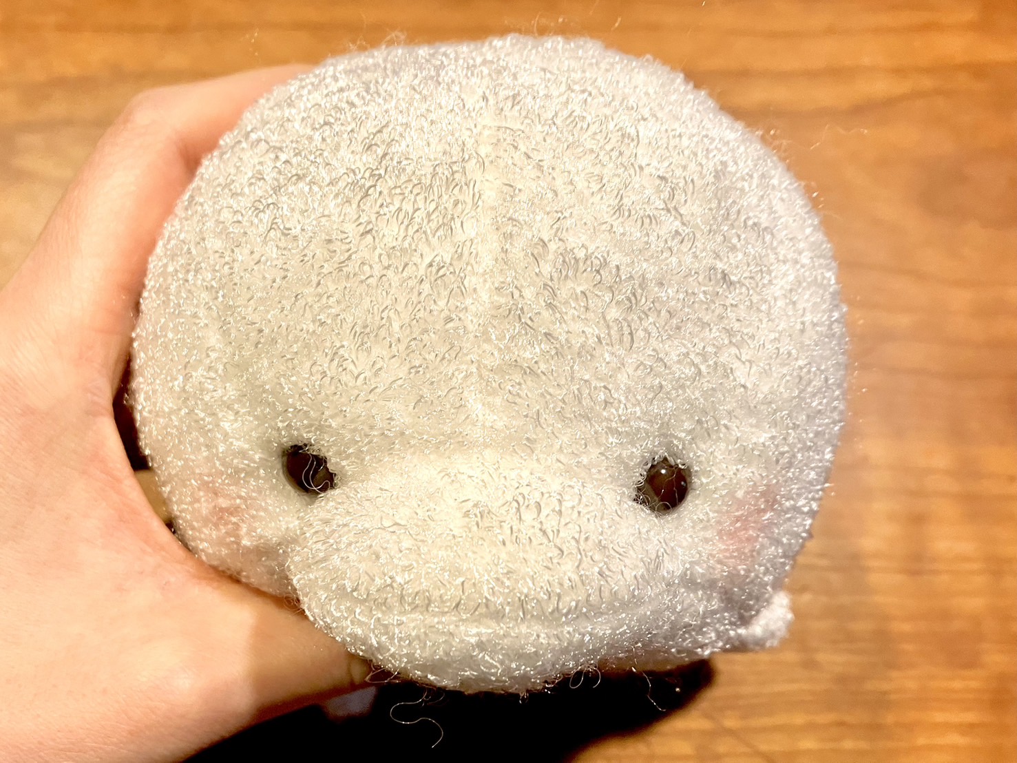 何なら2023年に届いた巨大アザラシより横幅が長い。全体的にシュッとしてるから持ちやすいだけだった。