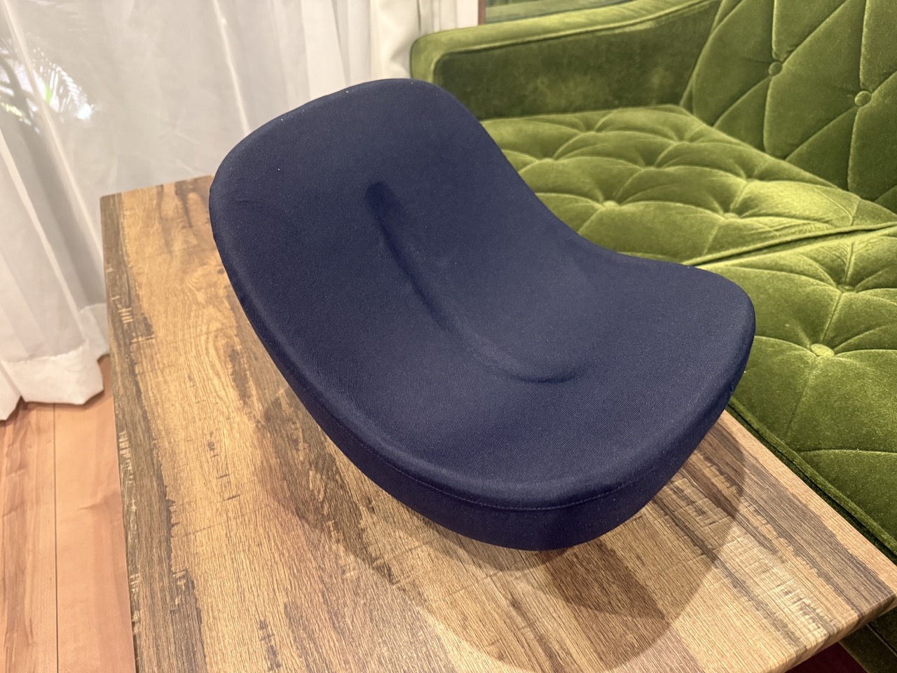 座ってみると、ゆらゆらとロッキングチェア的な動きがしやすい。イス自体がコマのような形状をしていて、座っているだけでユ〜ラユラ。