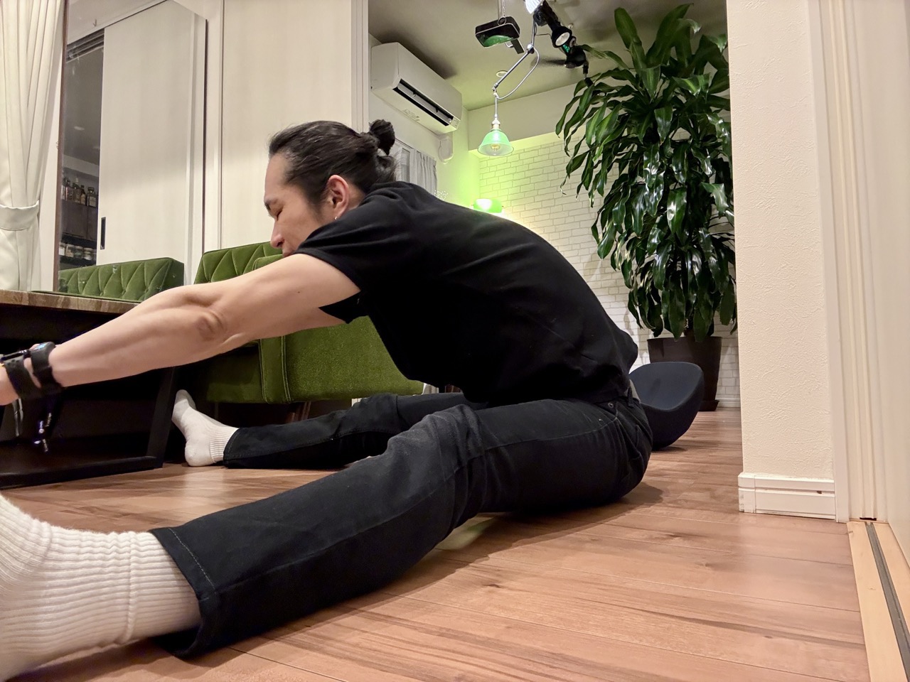 ポールダンスの練習時はもちろん、キックボクシングの練習の時なんて、練習前と練習後にも柔軟している。