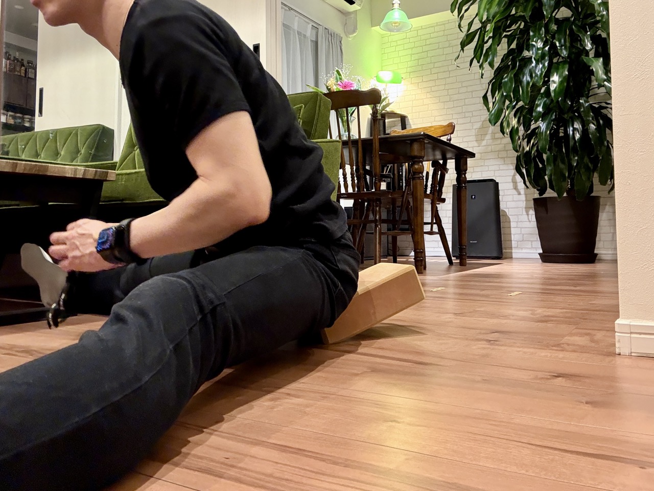 私の使い方がダメダメなのかもしれないが、これなら普段やってる「ヨガブロックの端っこに腰掛ける」のほうが柔軟しやすく……
