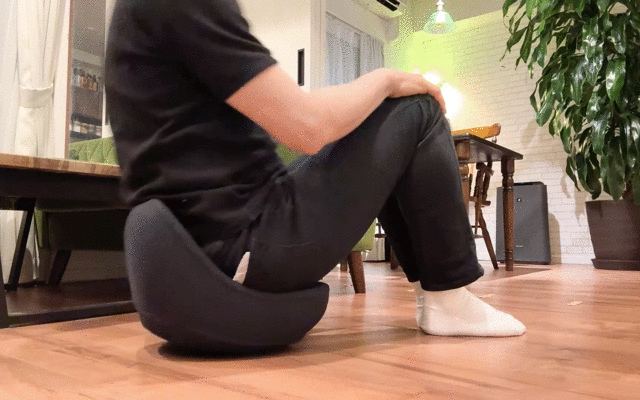 まさにAmazonの商品写真「座ってゆらゆらする開脚チェア」そのものの動きをしている。これは期待……!