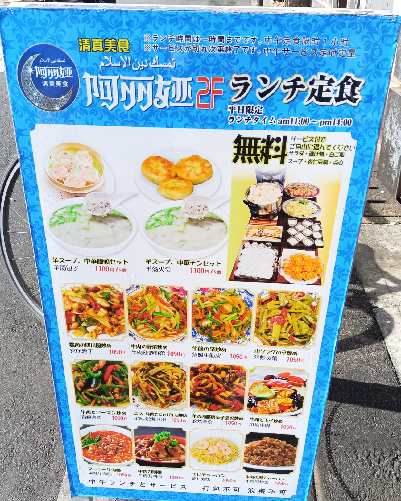 民族料理としてハラール中華が息づいているところに中国の広さを感じた。ガチ中華を巡らなければ一生出会わなかったかもしれない。そんなわけで入店してみると、ランチ定食は税込1155円から税込1265円までであった。