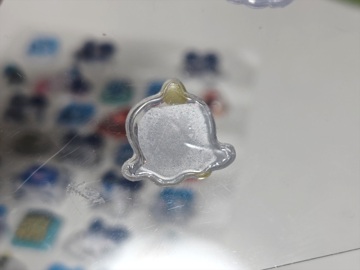 本物はクッキリと精密なフォルムなのに対して、偽物はフォルムがボヤッとしていて、中にゴミが浮いているものまである。