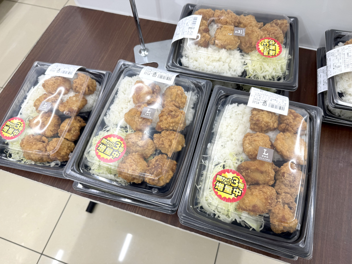 いずれにせよ『盛りすぎチャレンジ』が第3週に突入し、今回の大目玉「盛りすぎ! 鶏のから揚げ弁当」が登場している。時間によっては割引きになっていることもあるので、ぜひチェックしてみてくれよな!