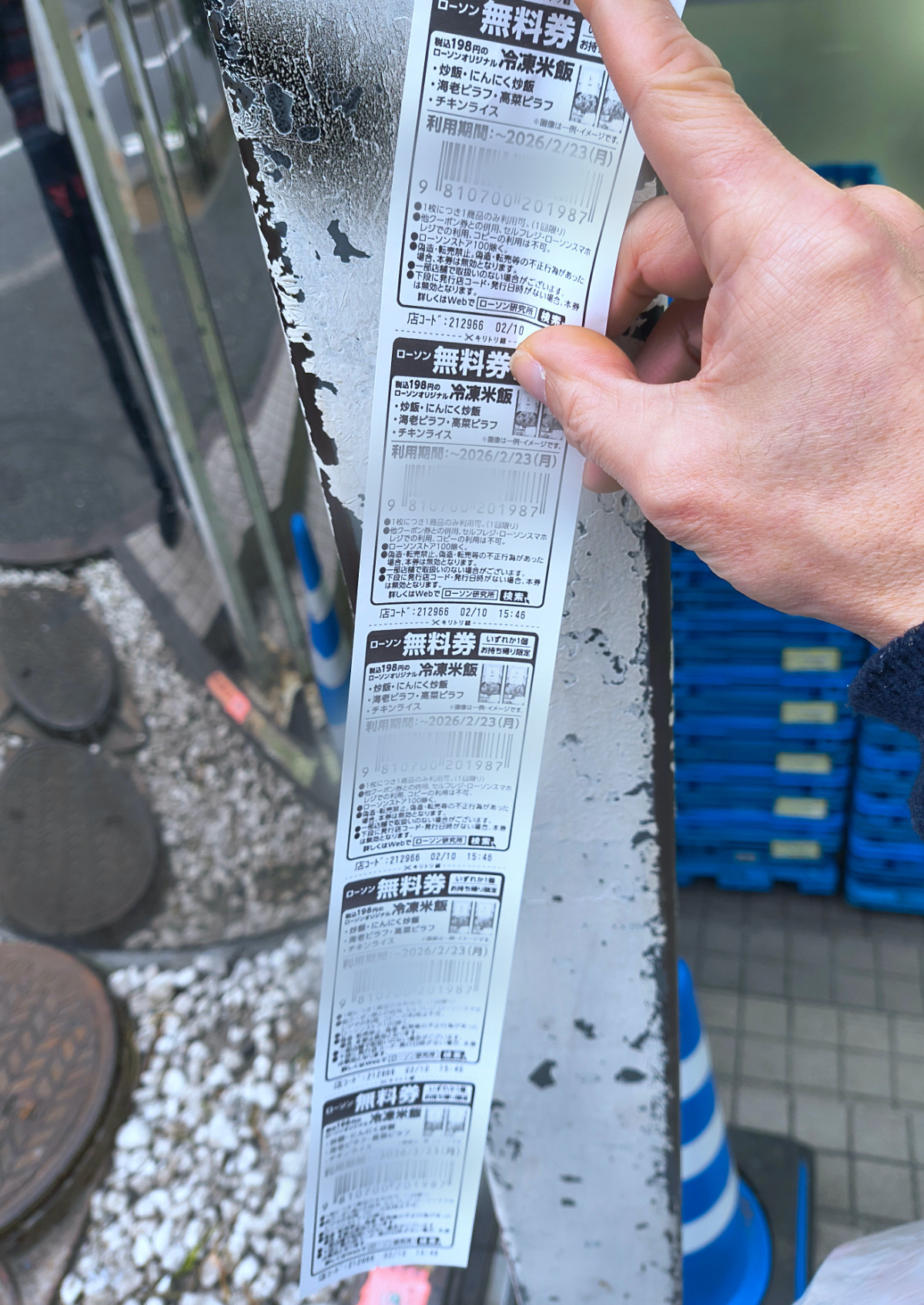 購入するとクーポンがついてきた。5個買ったので5枚だ。めっちゃ長いレシートを受け取った。そのクーポンを持って再び店舗へ。