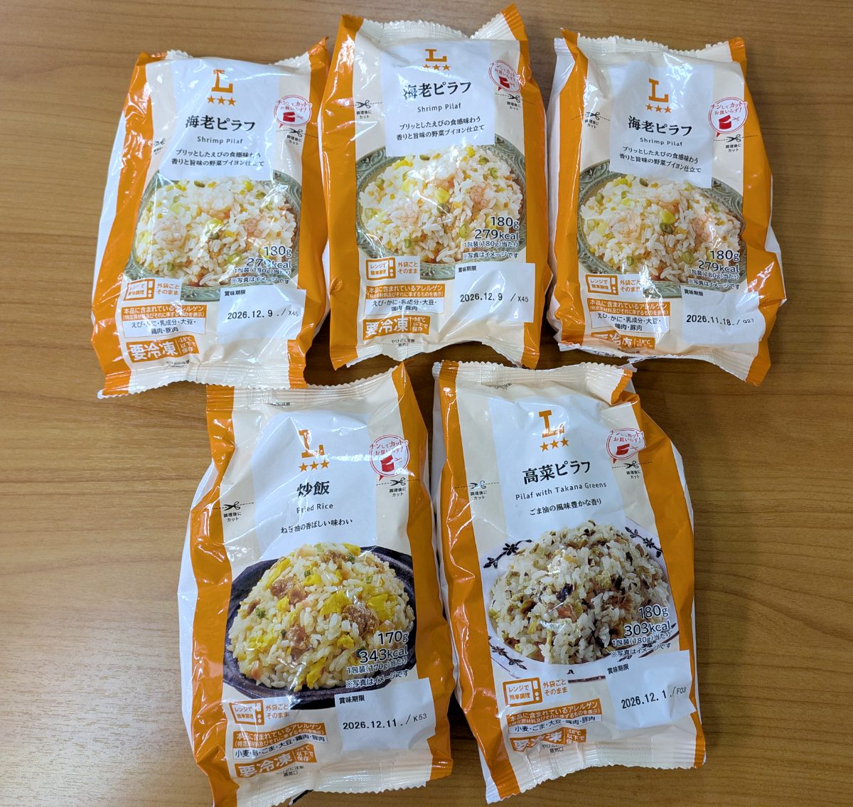 そして無料券で手に入れた品が、海老ピラフ3個にチャーハンと高菜チャーハンがそれぞれ1個ずつで全部で5個だ。