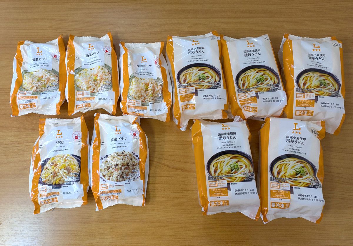 そうして全10点を持ち帰ったぞ! 普段こんなに冷食を買うことはないもんなあ。結構重いな。