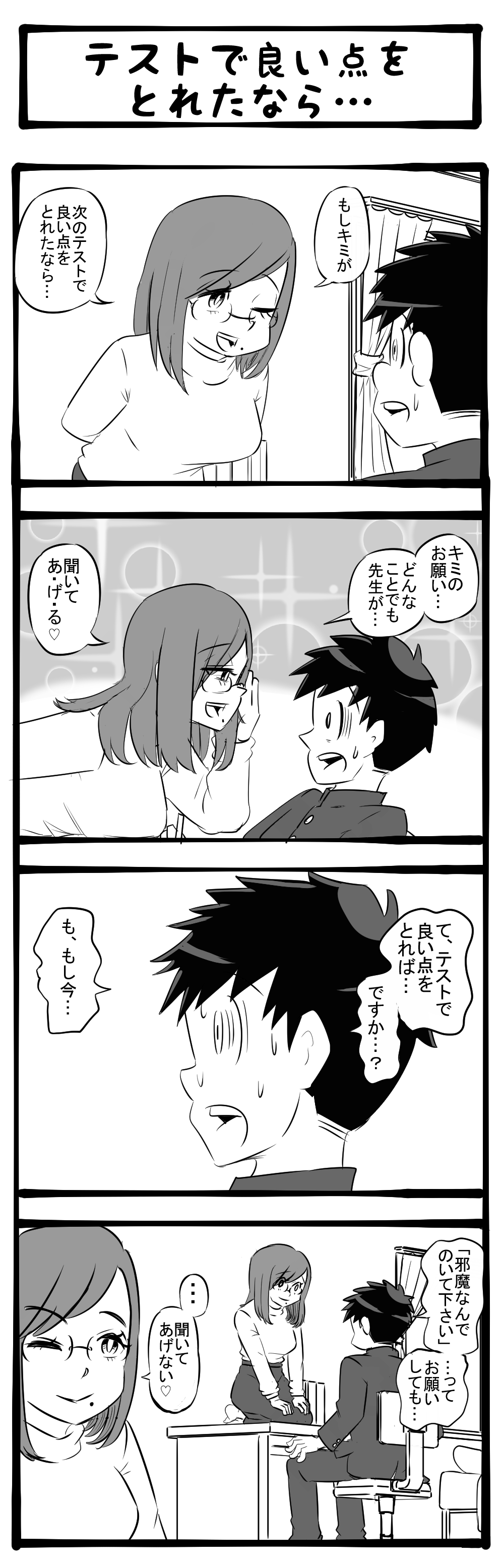 まぁ、その立ち位置やったらそこにおるわな! ドキドキの交換条件を提示する家庭教師! 四コマサボタージュBYD第298回「テストで良い点をとれたなら…」