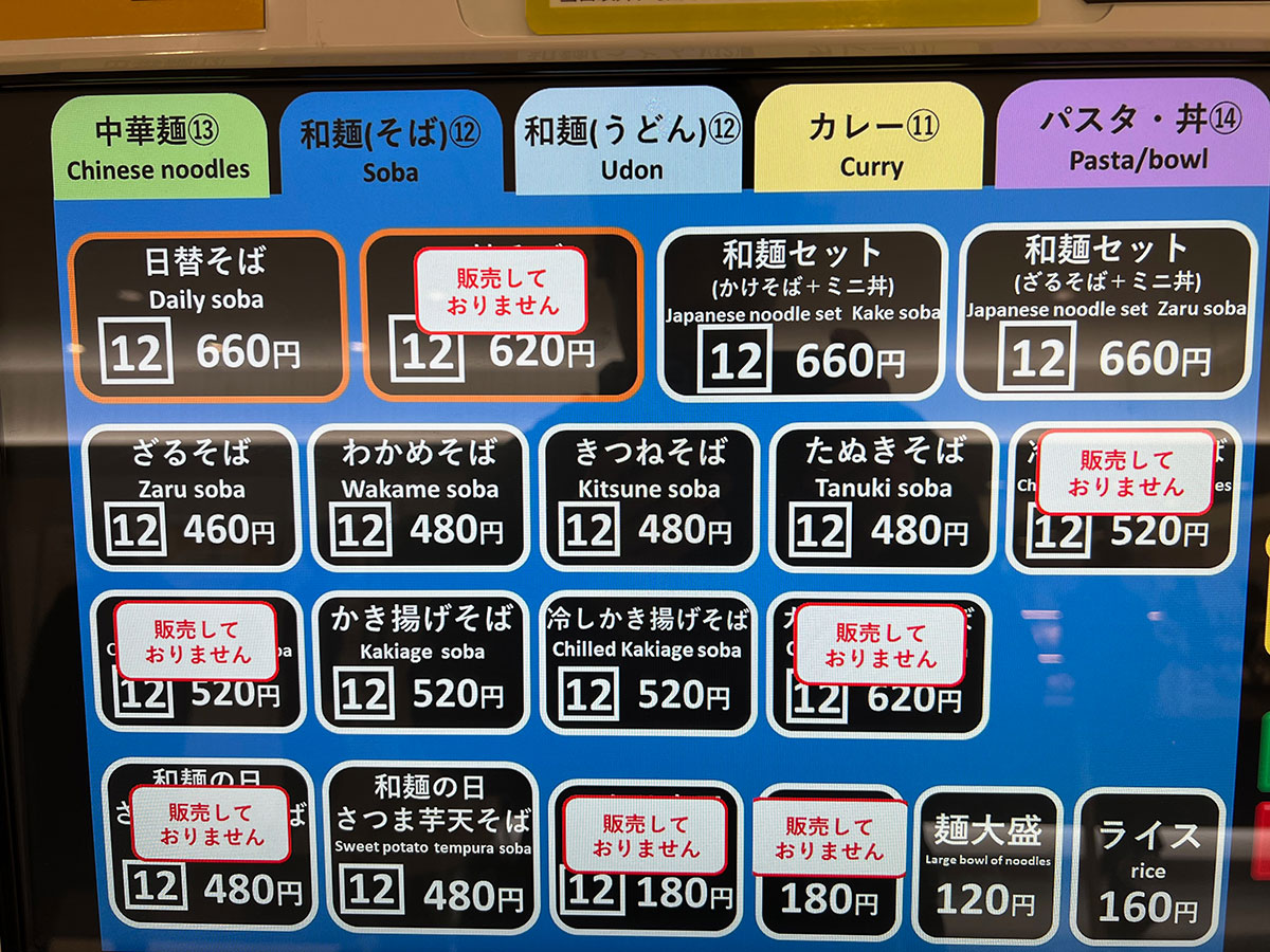 ▼一般開放されている東京都庁第一庁舎32階職員食堂の券売機。ちなみに、ChatGPTは「定食が税込500円以内(日替わり)」と教えてくれたが、実際には日替わり定食は500円オーバー。ざるそば などごく一部のメニューが500円以下という感じ。価格などの詳細は公式サイトにてご確認を
