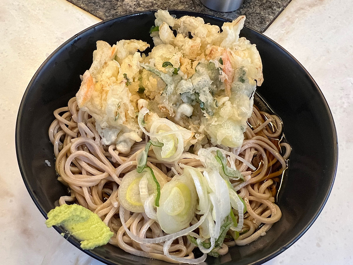 ▼こちらは冷やし天ぷらそば(500円)。美味し!