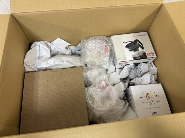 【瞬殺】イワキの耐熱ガラス福袋(3300円)が超巨大な段ボールで届く→ 店みたいになったので定価を計算してさらに衝撃
