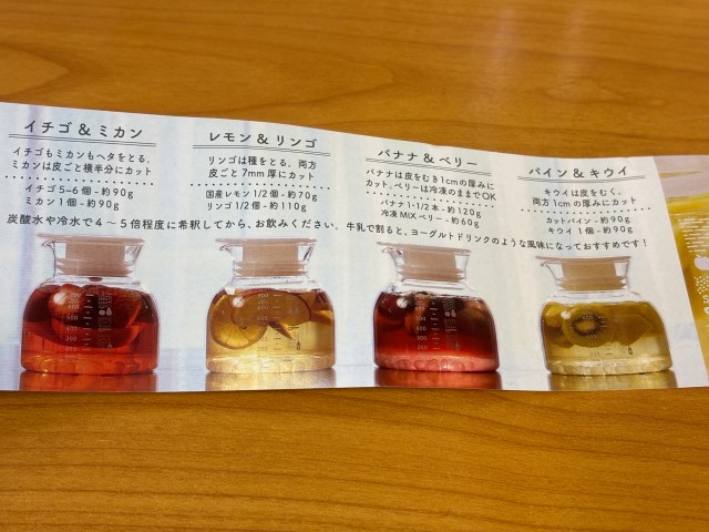 ちゃんとレシピも入ってるから作ってみたくなる! ネットの口コミとかを見ていると、アイスミルクティーを作る容器にしたり、ドレッシング作りに活用している人もいるみたい。