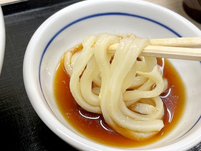 さすがに、ただの素うどんをおかずにご飯を食べるのは……。というワケで(?)付いてくるのが、別添えの柚子胡椒ダレだ。