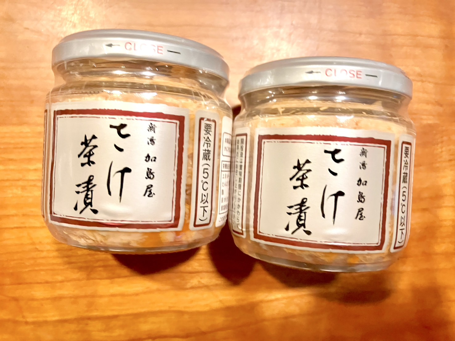 新潟のお土産に、「加島屋のさけ茶漬」というものがある。なんでも、とってもおいしい鮭フレークのようなもので、都内の高級デパートにも店舗があるらしいのだが……