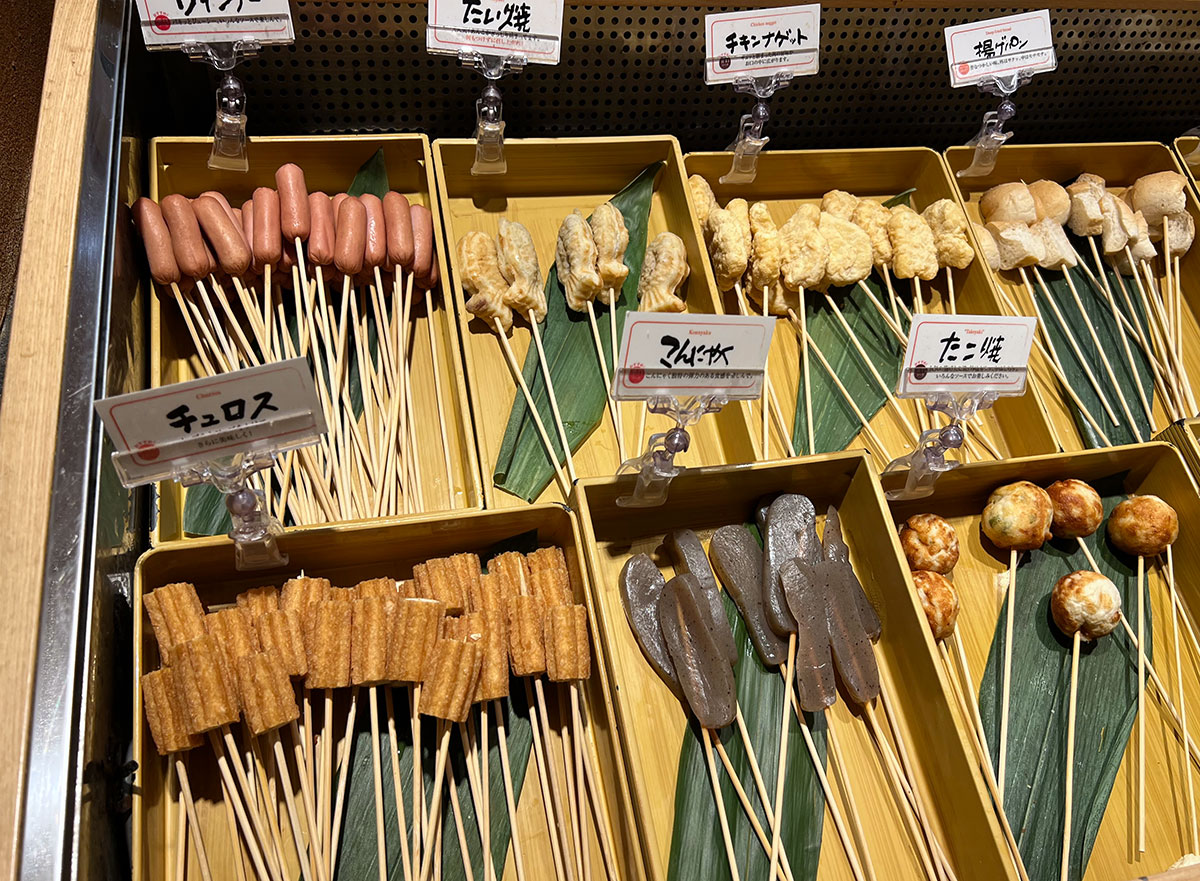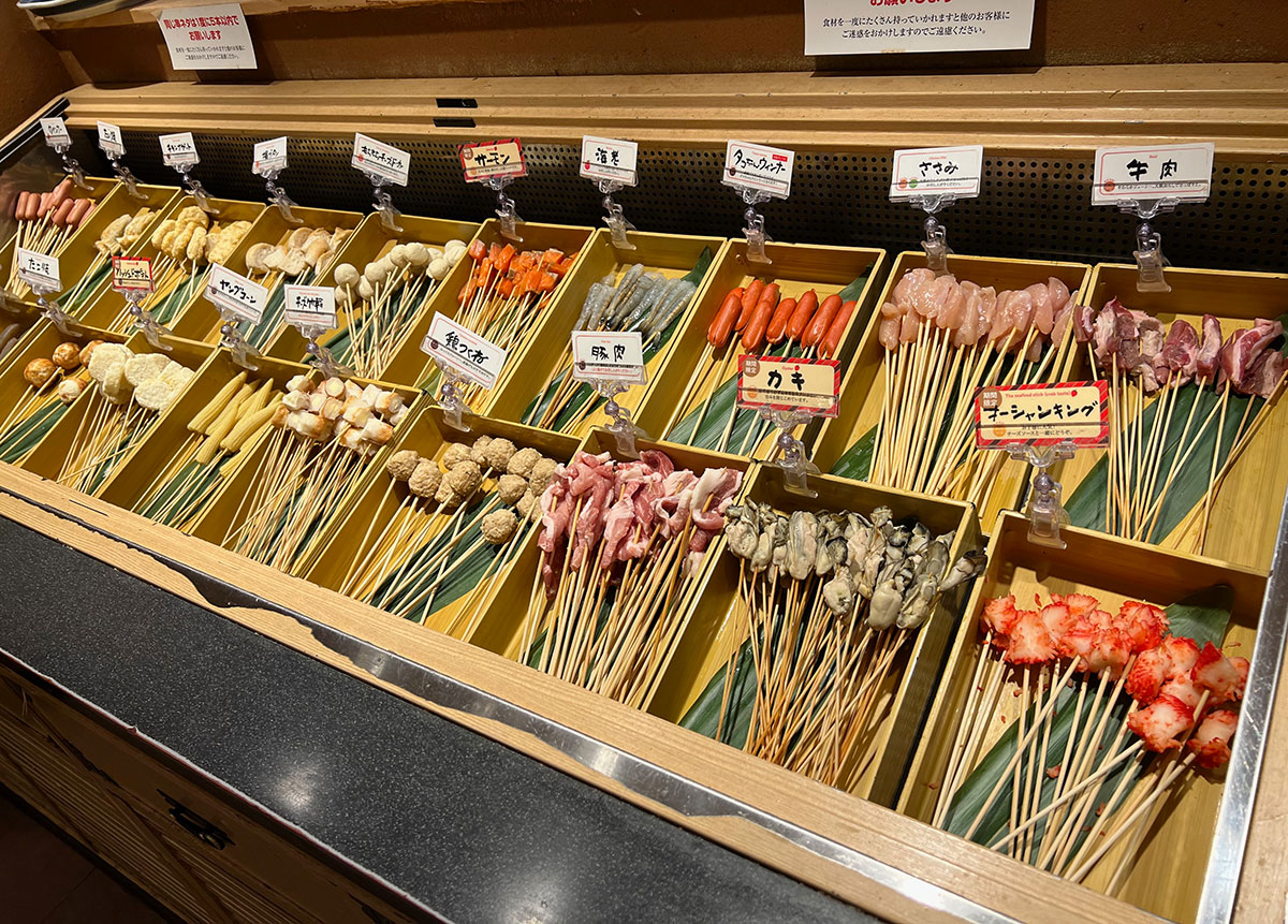また、串カツ自体も種類豊富で、お肉や魚介類、野菜といった定番から、たこ焼きやたい焼きといった変わり種まで。