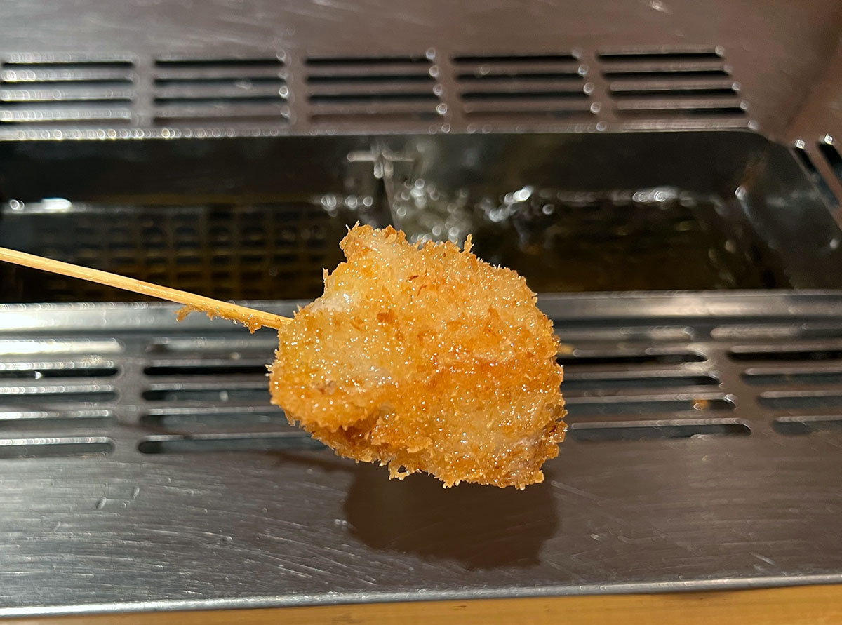 詳しくはそちらの記事でご確認いただきたいが、簡単に言うと自分で好きな串を取ってきて、席に備え付けられているフライヤーを使って自分で揚げるお店だ。