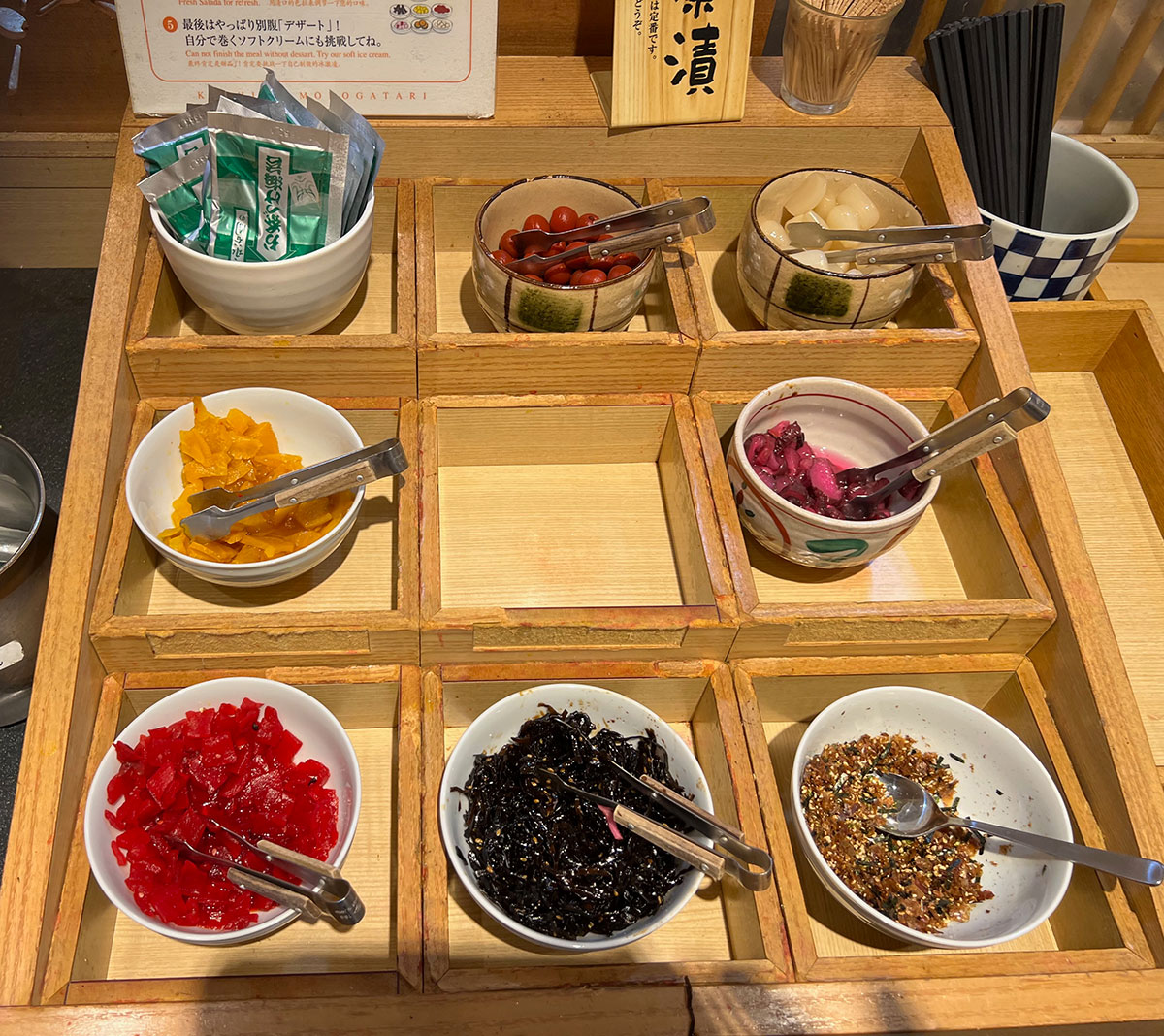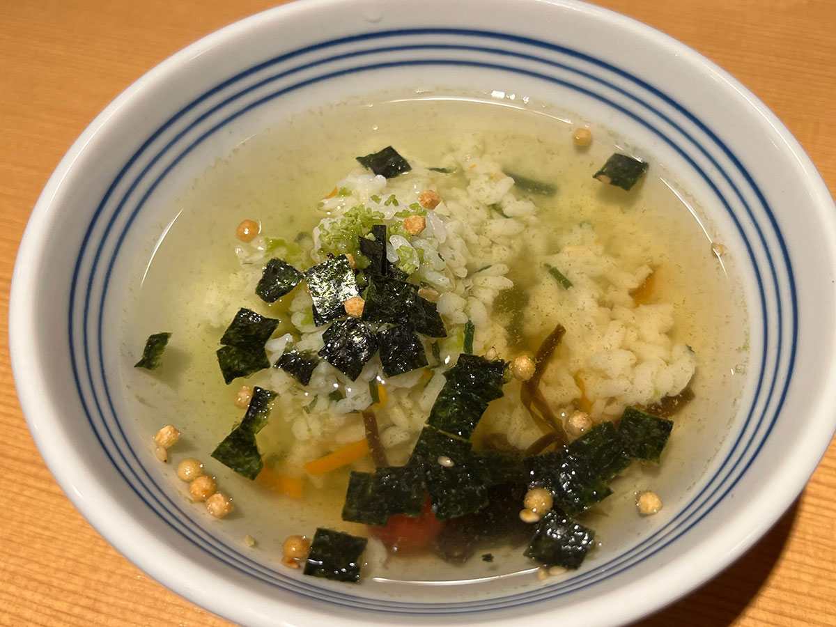 ▼すごいなと思ったのがお茶漬け。味変のバリエーションが豊富だ。何よりお茶漬けを食べることで口の中がさっぱりするから、揚げ物を何度もリピできる