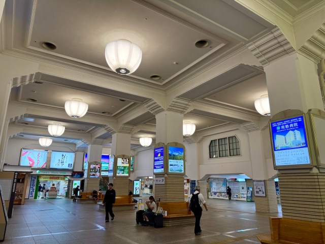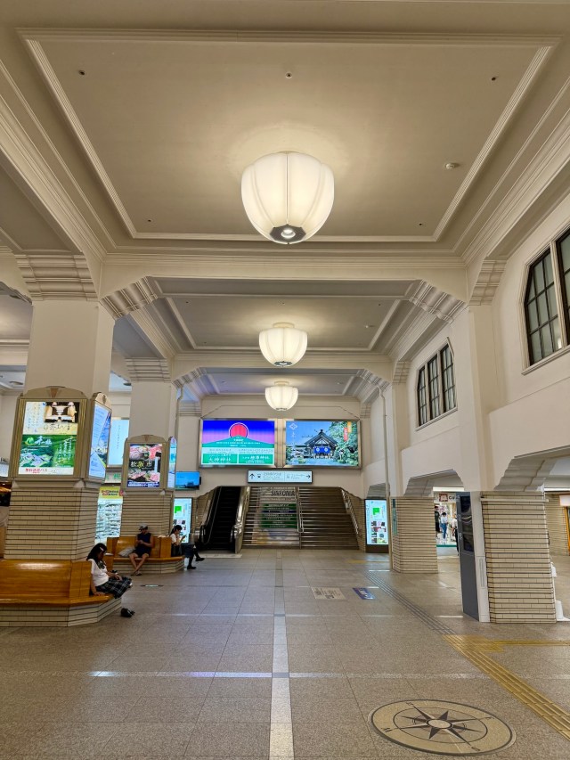 外観だけでも十分に見応えがあるが構内もヤバい。天井は高く、照明や窓のデザインもクラシックで教会の聖堂のようなオーラ……「日本一美しい駅舎」の1つなのは確か。当時の人たちは「伊勢に来た」という高揚感をここで味わっていたのだろう。