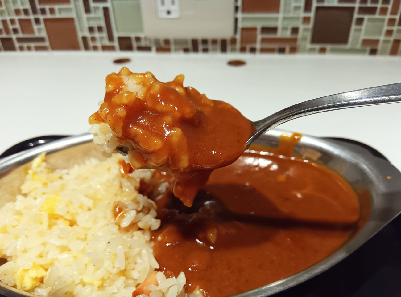 そんな炊き込みご飯カレーを食べている間に白ご飯が登場していたので、2杯目はオーソドックスなジャパニーズカレースタイルで味わうことにした。