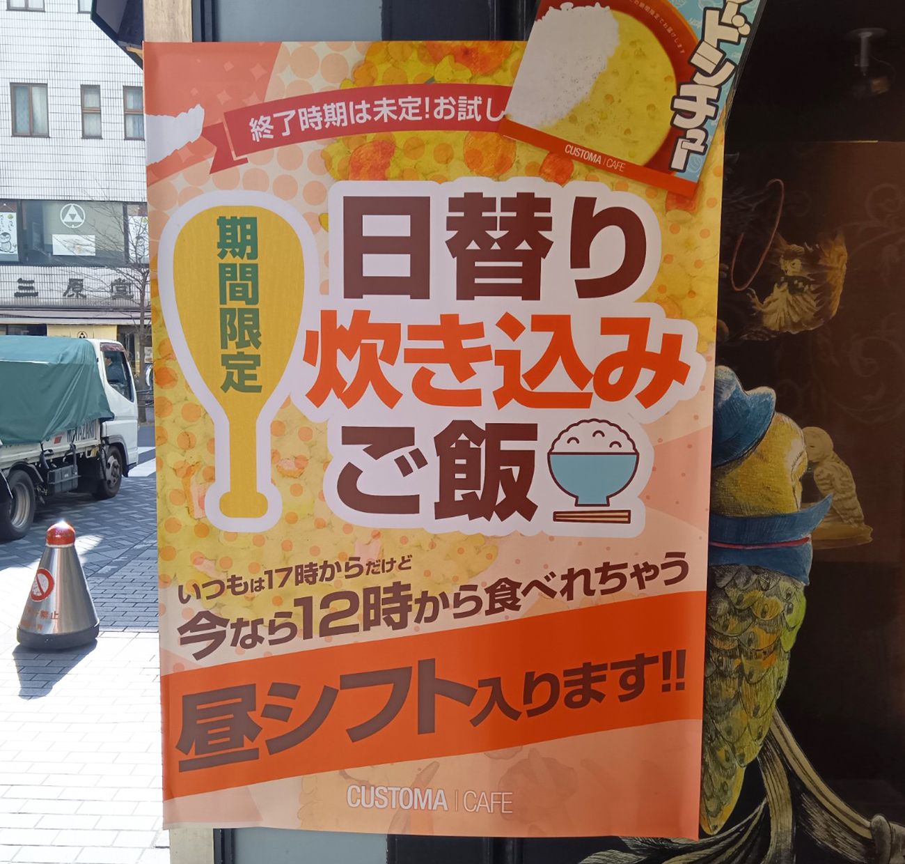 ▼炊き込みご飯が昼から食べられるのは期間限定らしい。ただし、終了時期未定