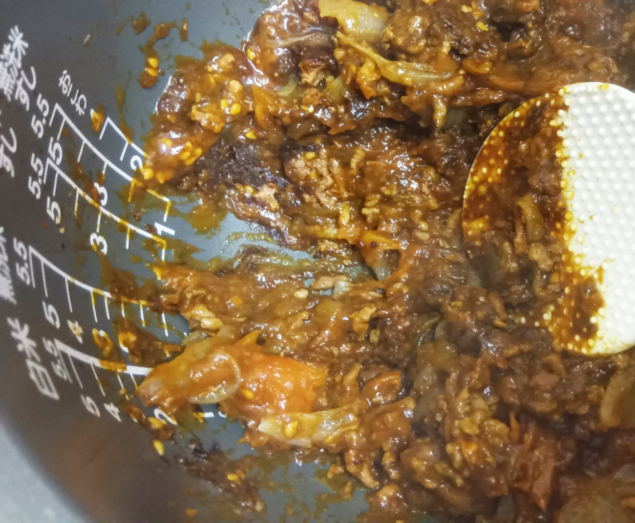 食後、炊飯器にこびりついたカレーが結構しぶとかったこと。
