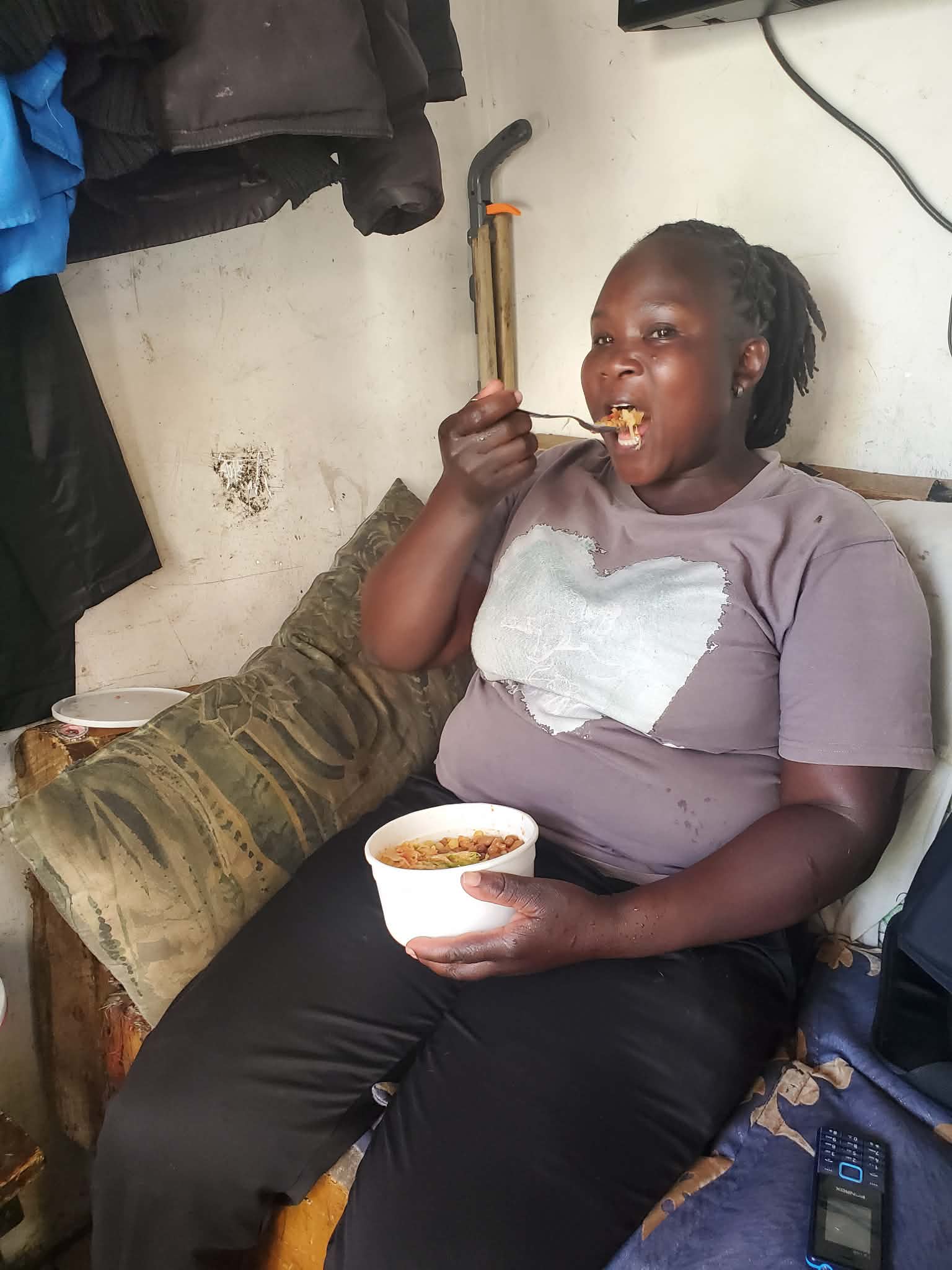 【写真】ケニアのお手製お弁当をおいしそうに食べる彼女