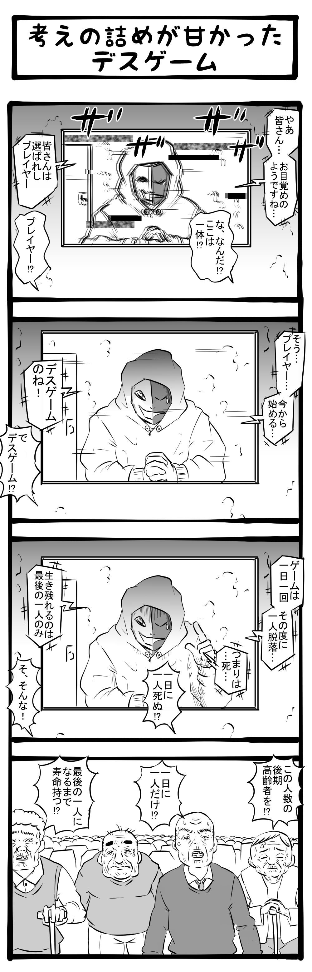 生き残れるのは一人だけ! なじみ深い場所で繰り広げられる死の遊戯! 四コマサボタージュR第279回「あまり見ないタイプのデスゲーム」