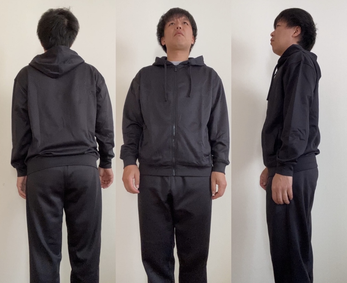 シルエット的にはジャージ、あるいは薄手のスウェットを着ているかのよう。ランニングやウォーキング、それから近所に出かけるくらいはまったくもって問題ないと言える。