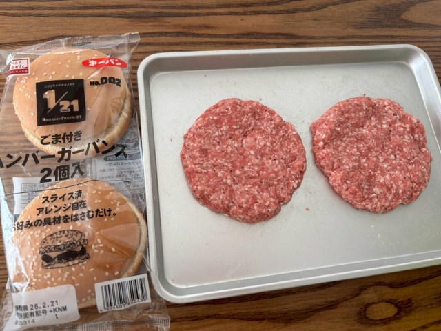 直径をバンズより一回り大きく、かなり薄め(7~8mm)に成形する。こんな感じ?