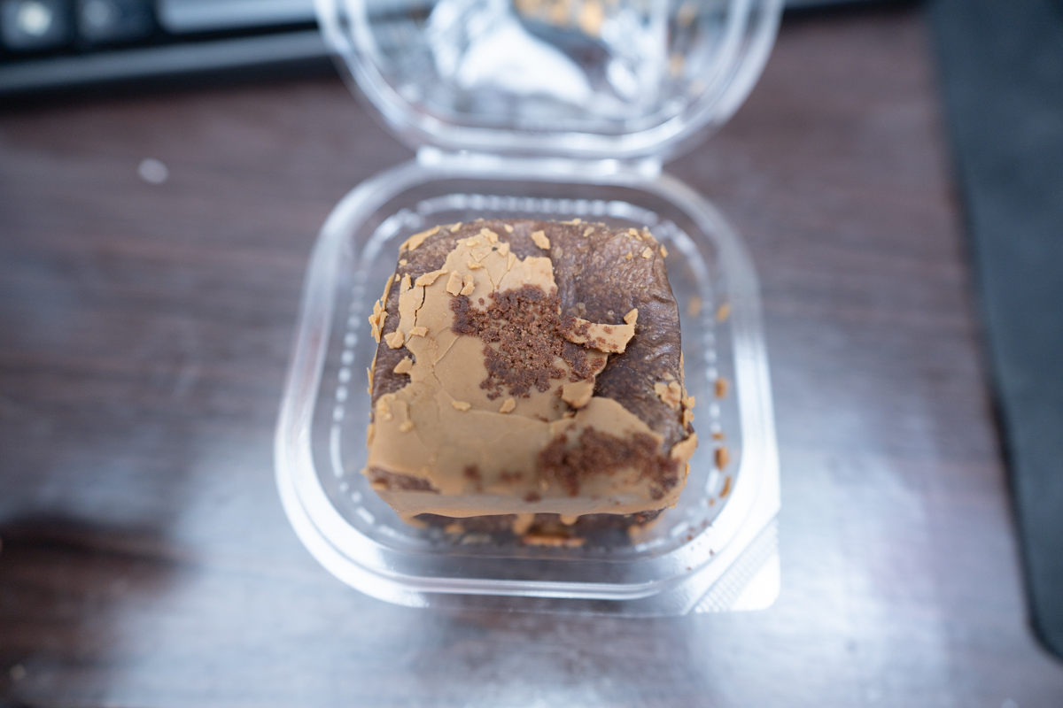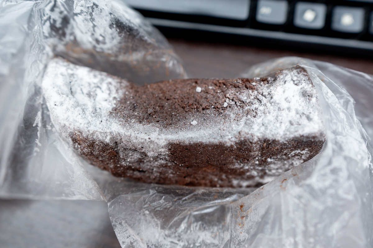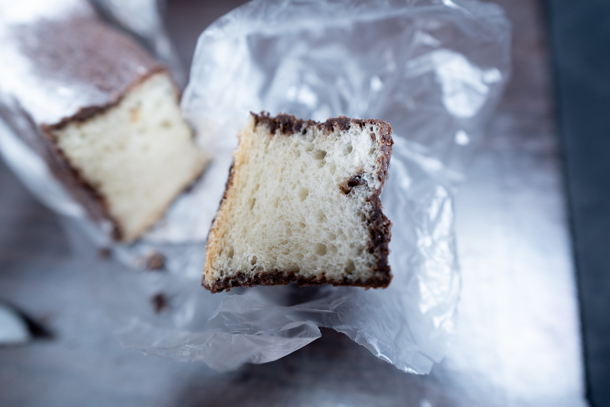 見るからに歯ごたえの良さそうな四角いフォルム。チョコが染みこんでそうなビジュアル。