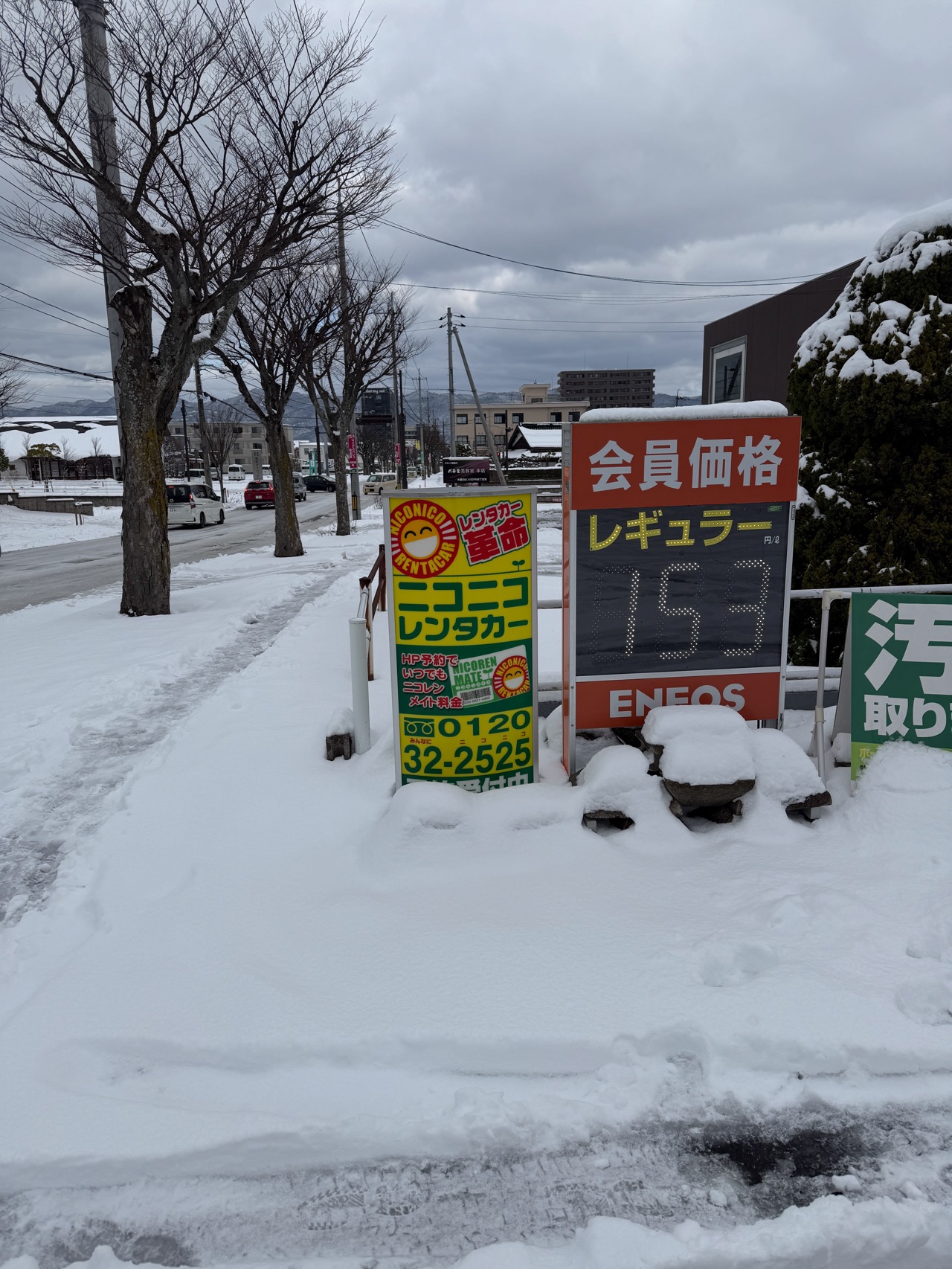 レンタカー屋さんの話では、この日の前日は本当に珍しいほどの大雪で、飛行機は無論、電車もバスも全部ストップしたという。